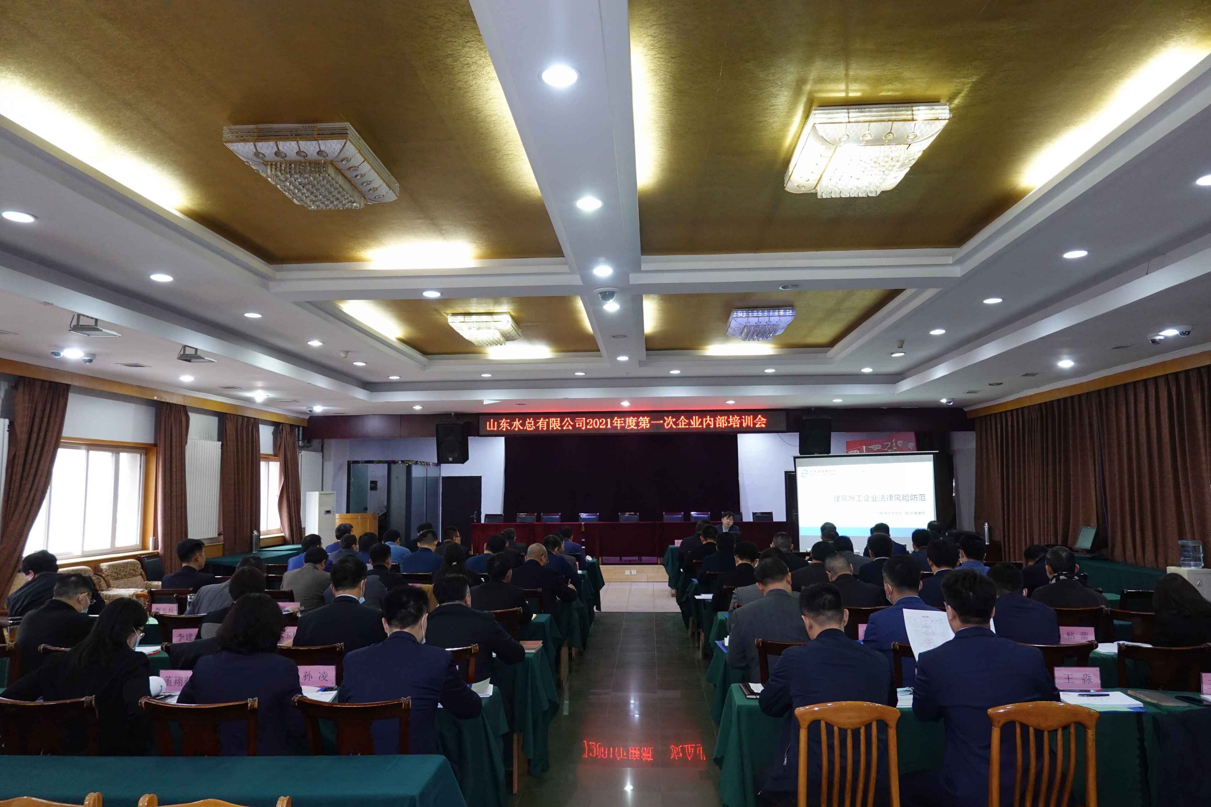 2021年3月13日,公司在总部二楼多功能会议厅召开2021年度第一次企业内部培训会,参会人员包含齐鲁律师事务所的特约讲师郭洪涛律师、公司领导班子、各权属单位和公司各部室的中层副职以上人员共57名。