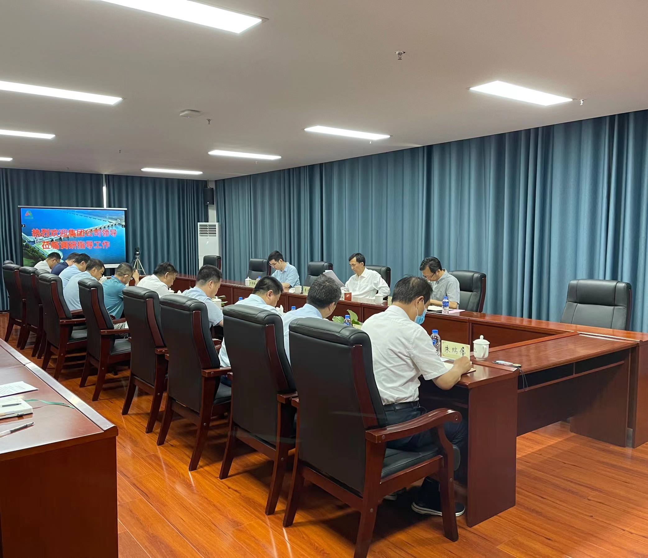 李广进一行首先在总部大楼各权属单位进行走访调研,并同部分权属单位负责人进行深入交流。随后在调研会上,李广进听取了关于山东水总基本情况、公司治理、党建工作、审计工作等有关情况的汇报,对山东水总划转IM(中国)管理以来取得的成绩表示充分肯定,转达了IM(中国)党委对山东水总的关怀和期望。