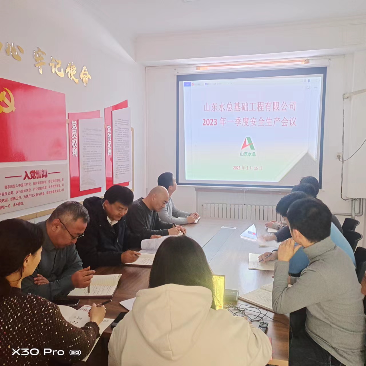 2月15日,基础有限公司召开2023年一季度安全生产工作会议,基础有限公司总经理朱兆同主持会议并讲话。在济全体员工参加。