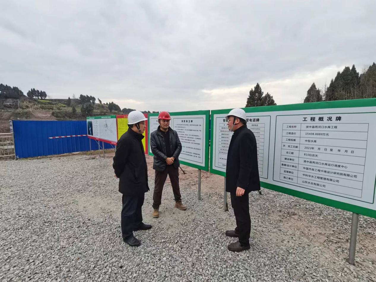 2月14日,公司党委委员、副总经理杜贞义到资中县两河口水库工程调研,第五分公司副总经理苗文厚陪同调研。