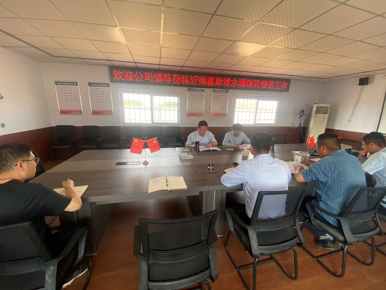 近日,公司党委副书记、董事、总经理靳文硕到第三分公司沭河上游综合治理、沂南县岸堤水源、郯城县马头灌区等项目检查指导工作,并与部分建设、主管单位开展了商务洽谈,第三分公司党支部书记、总经理徐浩、副总经理王庆捷陪同。
