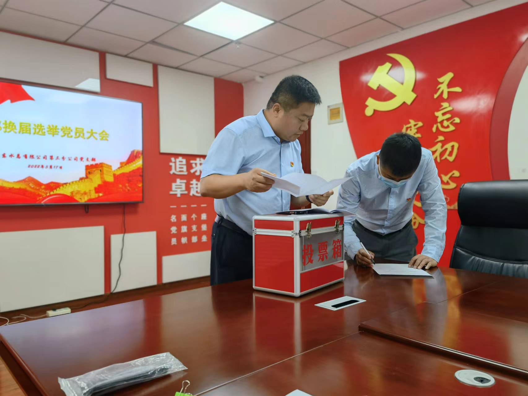 5月17日下午,第三分公司党支部召开党员大会进行支部换届选举。会议严格按照《中国共产党章程》的规定,审议通过了上届党支部工作报告、表决通过了大会选举办法、候选人名单及监票人计票人名单,在充分酝酿的基础上,采用无记名投票方式等额选举徐浩同志为新一届党支部副书记。在肯定三年来支部工作取得成绩的同时,也深刻认识到面对新的形势和新的任务、对上级党组织要求和群众的期望方面还存在很大差距。